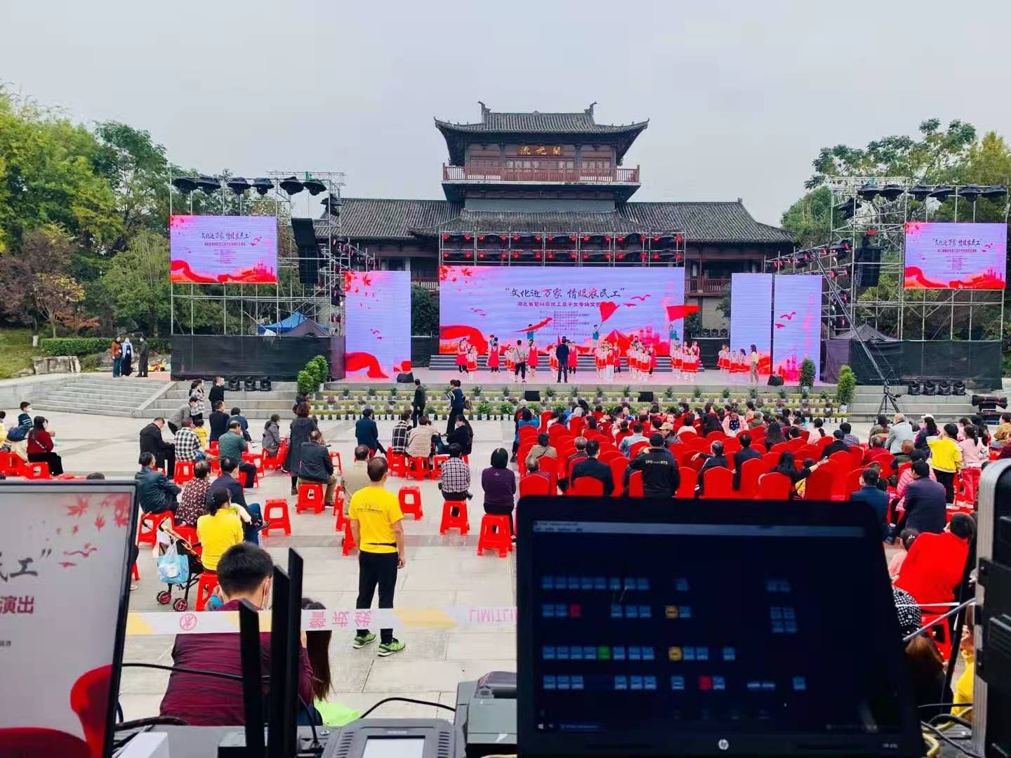 黄冈遗爱湖民族文化大舞台是一场户外的直播,在直播的过程中我们发生了一些小插曲。